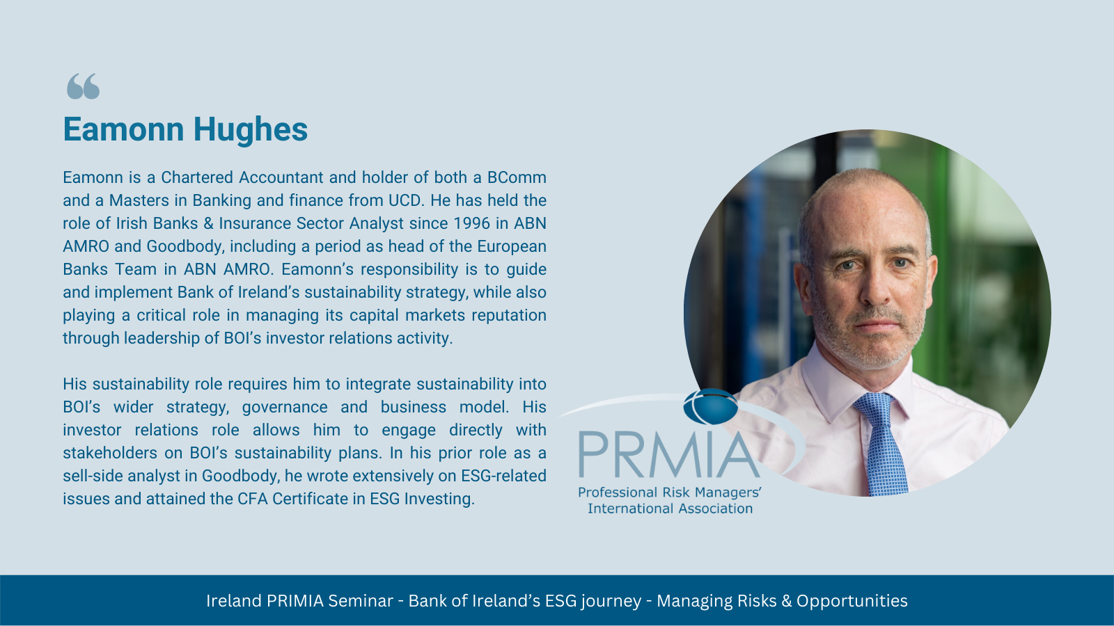 PRMIA Ireland Event – Bank of Ireland’s ESG journey – Managing Risks and Opportunities