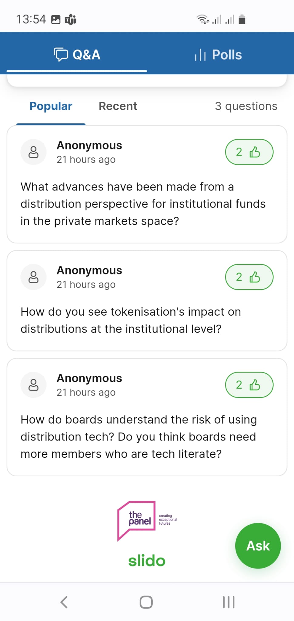 The Panel was delighted to sponsor the interactive audience participation tool Slido throughout the event, which gave participants an opportunity to see voting results live.